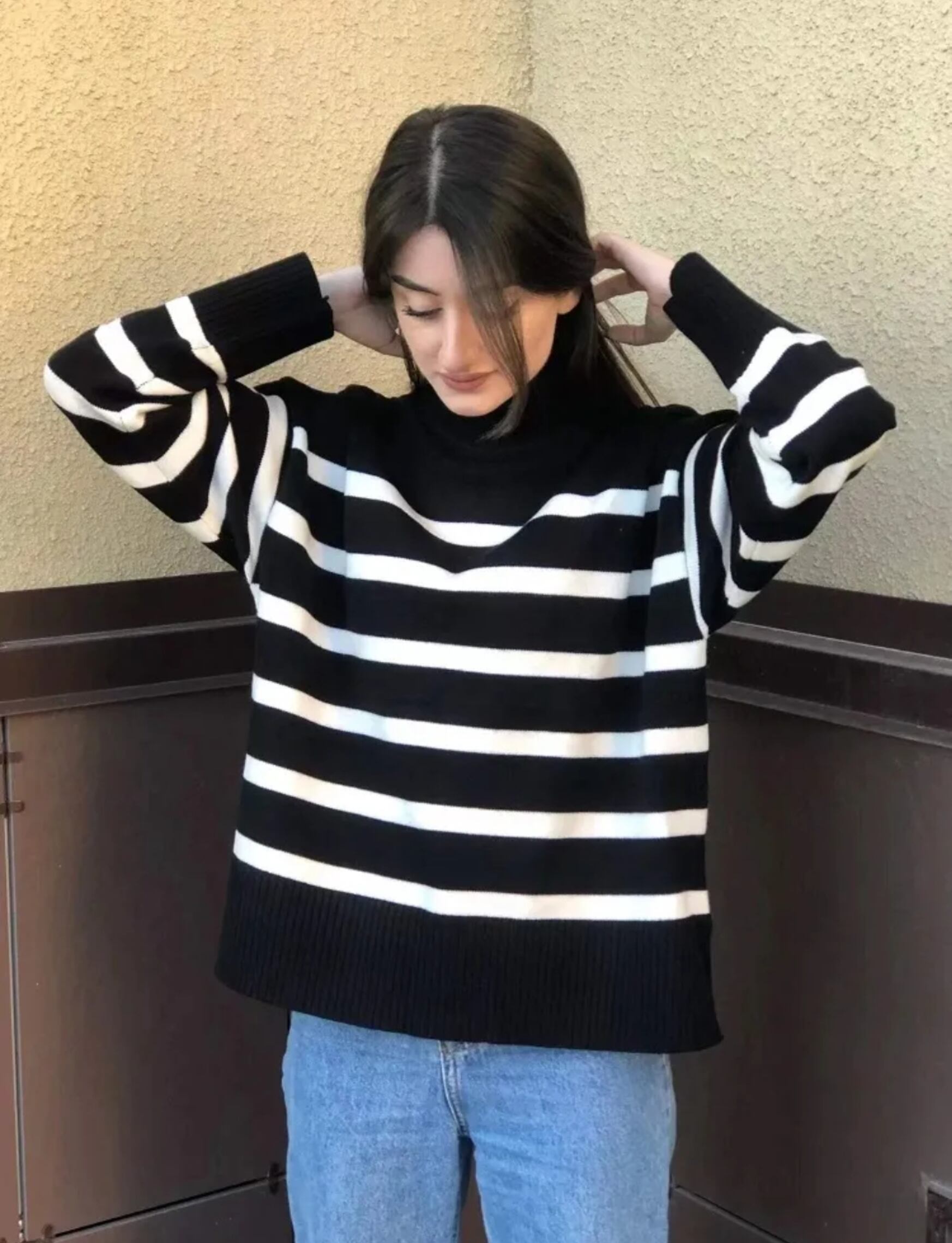 エレガントカジュアルな大きなスオライプセーター
