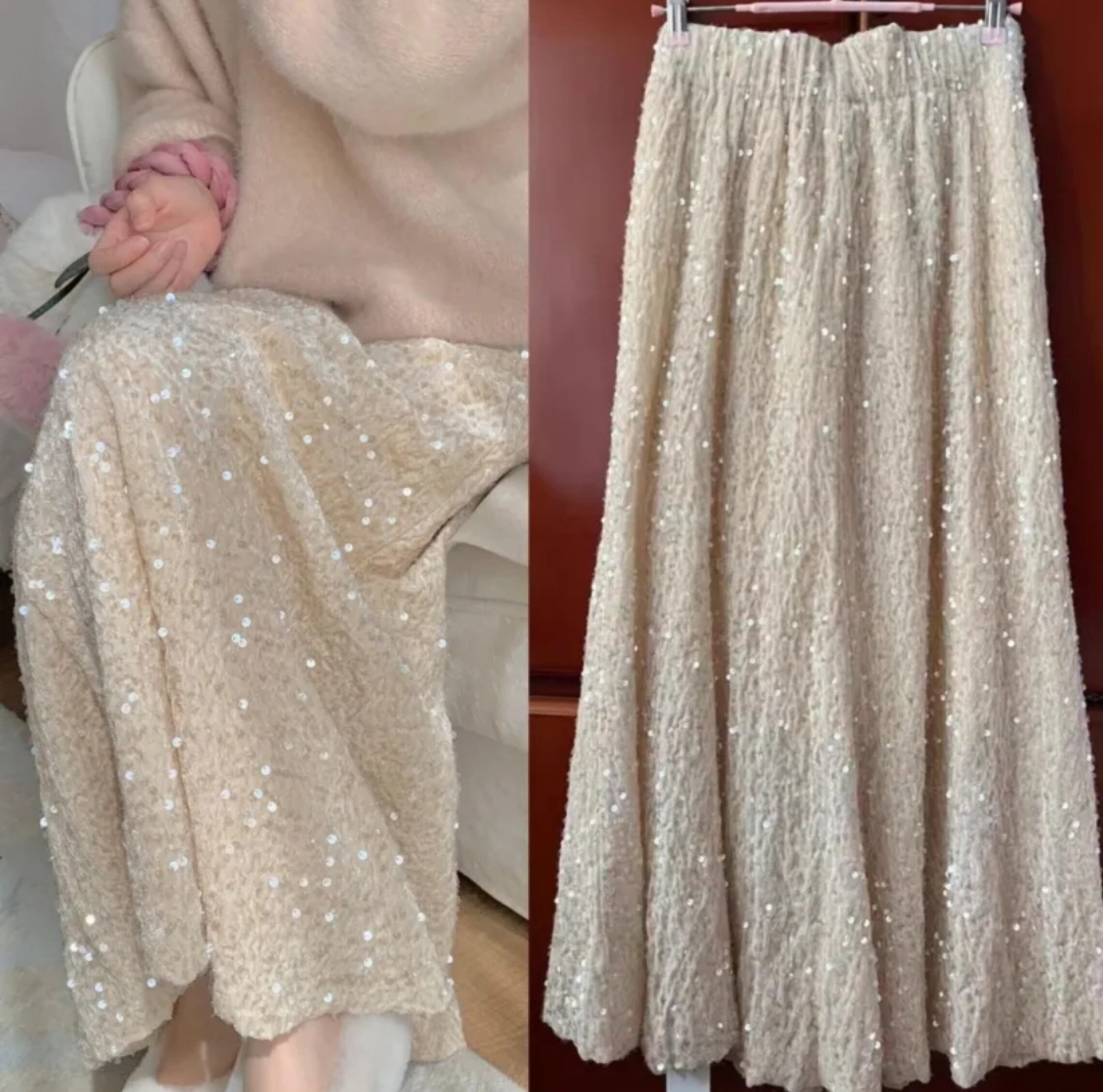 女子会、ママ会やパーティーにぴったりな厚手のベルベットスカートスパンコール。触り心地の良いベルベットに、ゴージャスなスパンコールがアクセントになっています。ボリューム感のあるシルエットで、歩くたびに、揺れるスカートが一層華やかさを演出します。どんなボディータイプにもフィットするユニバーサルなデザインなので、多くの方にお勧めです。女子会、ママ会やパーティーと、さめざまなオケージョンで、あなたの特別な日を輝かせましょう!いつもの装いにぜひ、エレガントなスパークルをプラスしてください。
