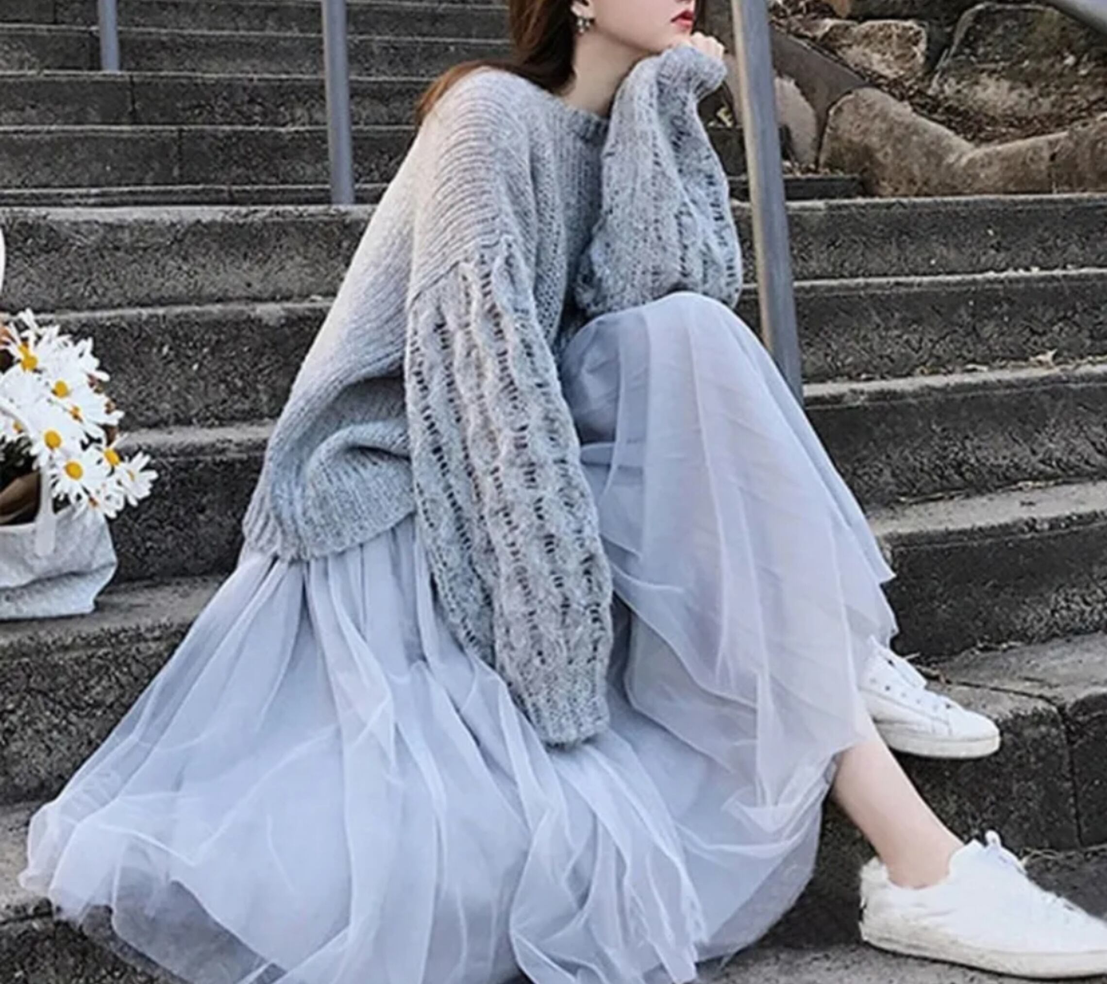 ルーズフィットニットセーター&チュールスカート