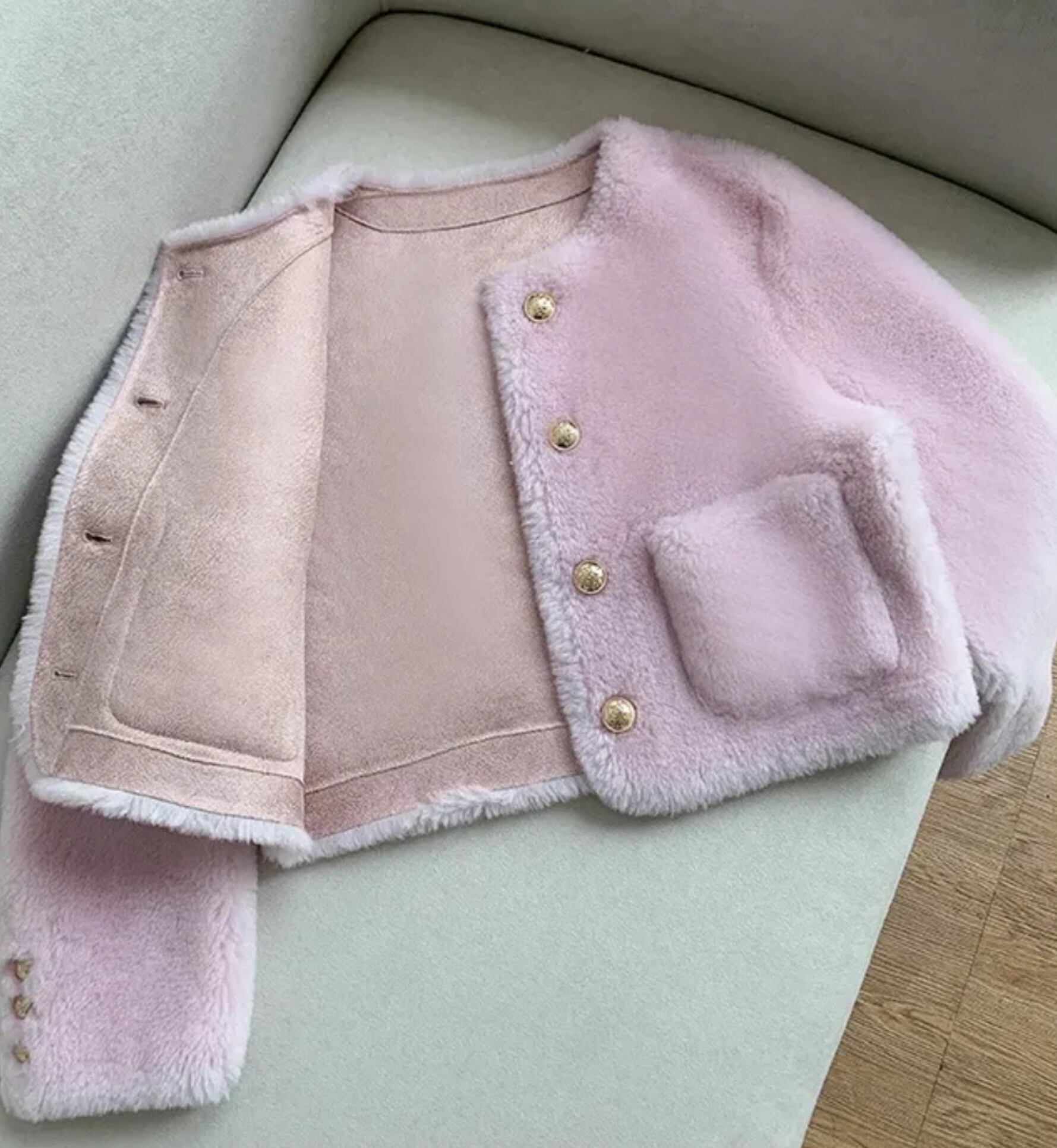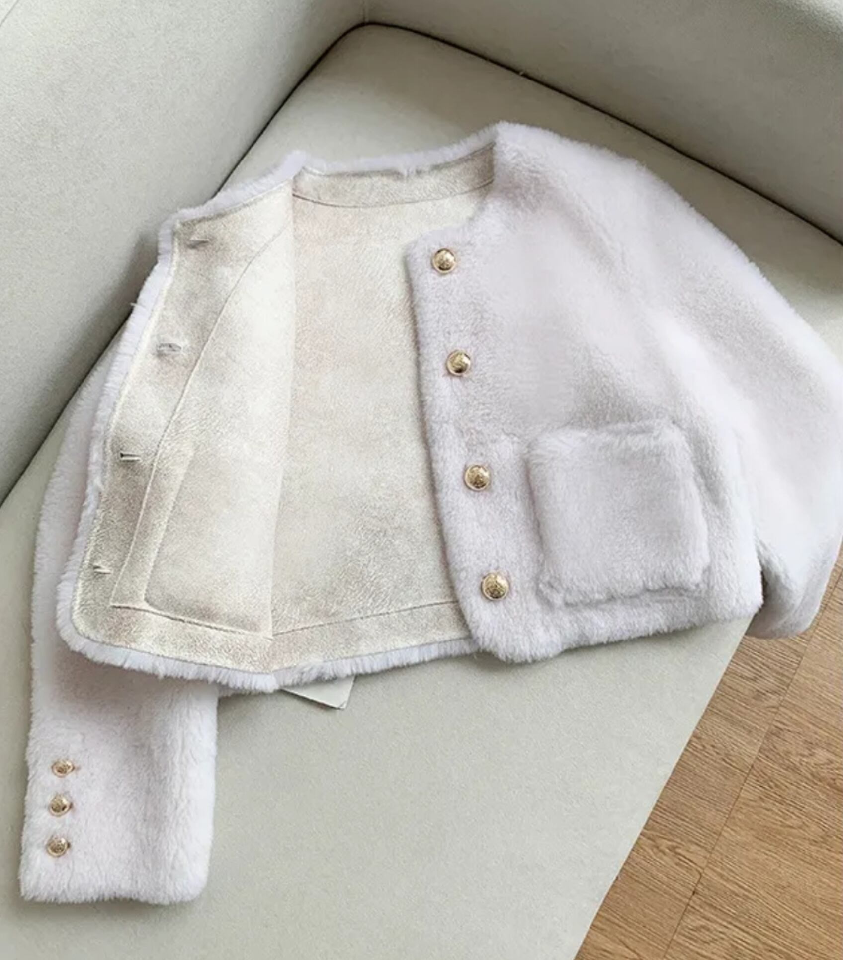 3色展開のリアルシープスキン、ラムファージャケット。温かさとおしゃれを叶える一枚です。シンプルなデザインながらも、リアルシープスキンとラムファーの贅沢な組み合わせが、女性らしい雰囲気を演出します。