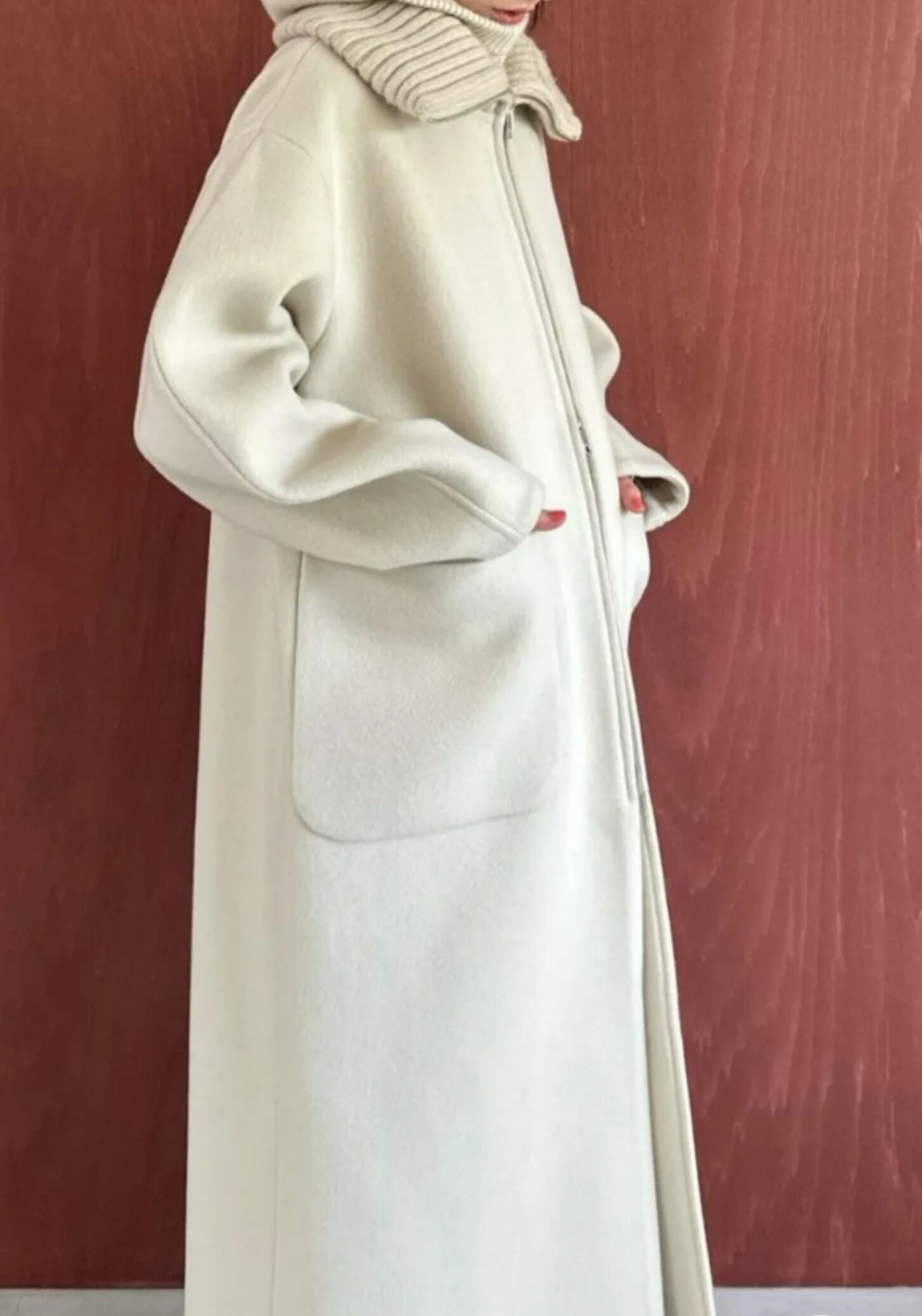 このコートは、上質な素材とこだわりのデザインで作られています。肌触りの良いウールブレンド素材を使用し、暖かさと快適さを追求。裏地には滑りの良い素材を採用し、着心地も良いです。さらに、シンプルでありながらもミニマルなデザインが特徴で、どんなスタイルにも合わせやすいです。