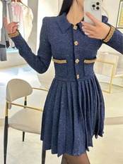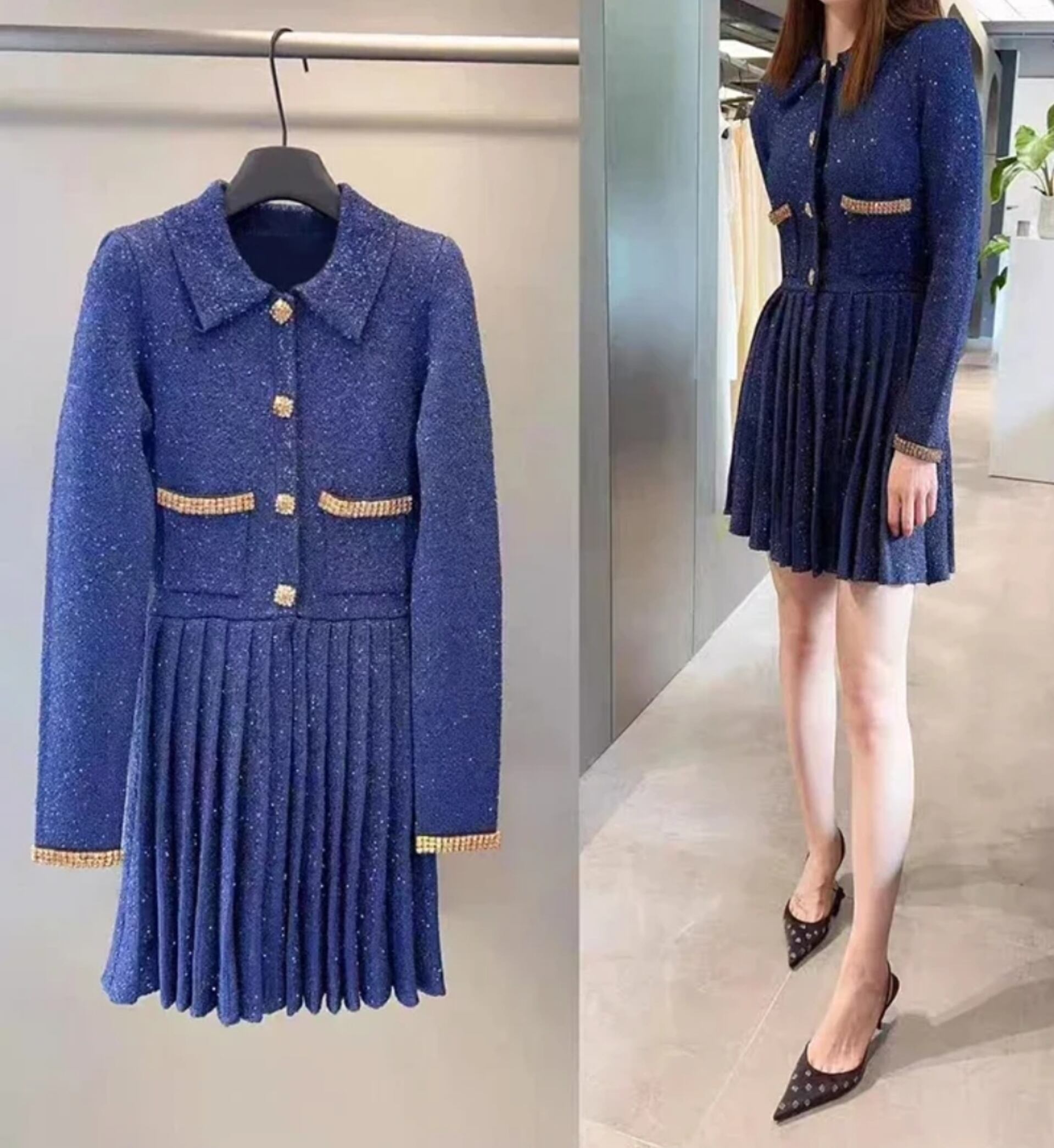 プリーツミニドレスワンピースは、エレガントでドラマチックなデザインが特徴の一着です。おしゃれなラメニット素材を使用しており、光り輝く美しさに上品さを兼ね備えたデザインです。女性らしいプリーツデザインにビジューも使用されており、パーティーや特別なイベントにもぴったりです。