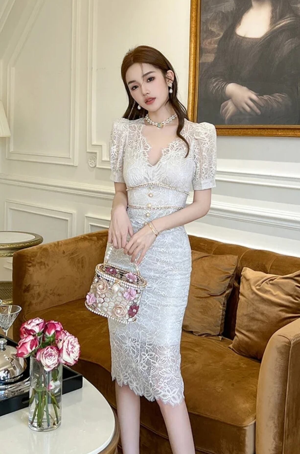 フレンチスタイルの魅力が詰まった2色展開のミドル丈レースドレス。どんなシーンでも一際輝く存在感を放ちます。上品で優雅なレース素材が、女性らしさを引き立てます。ミドル丈のシルエットは、大人の女性にぴったり。膝下丈で上品に見せながら、動きやすさも兼ね備えています。