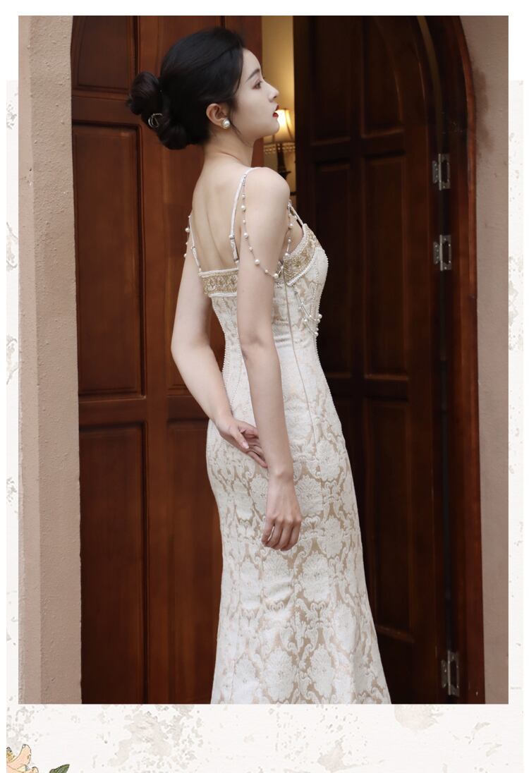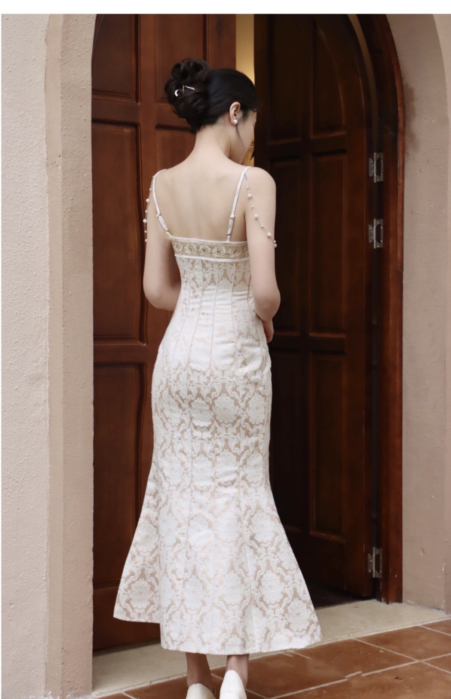 贅沢なレトロ宮殿スタイルのロングドレスが登場しました。華やかで優雅なデザインはまるで宮殿にいるかのような気分が味わえます。フィッシュテールの裾は品のあるデザインで、女性らしさを引き立てます。