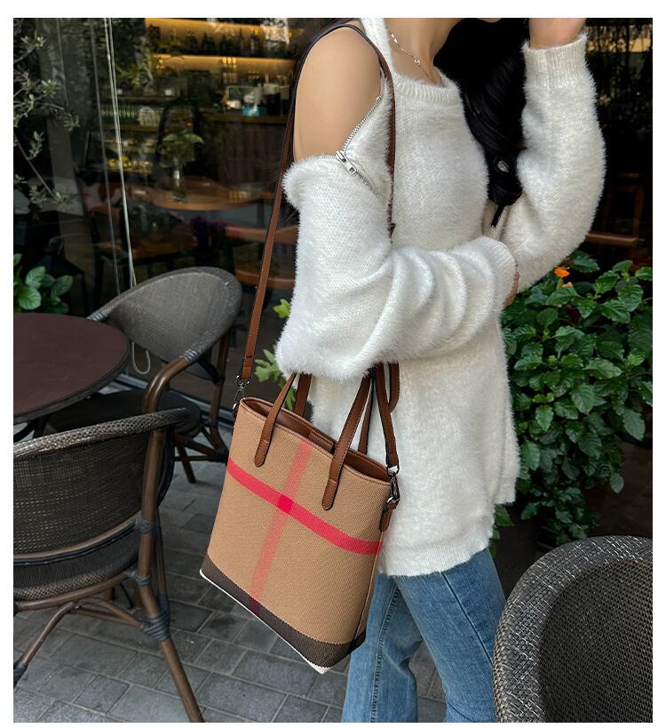 チェック柄が可愛らしいキャンバス地と高品質な牛革の組み合わせは、おしゃれ感を引き立てます。